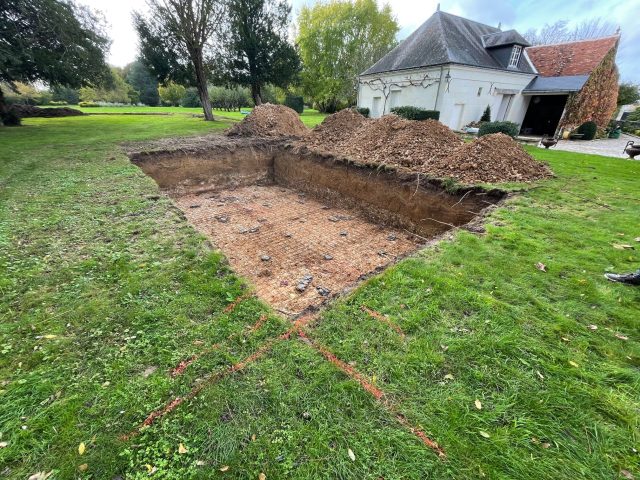 Le terrassement est une étape clé dans la construction d’une piscine. Il consiste à préparer et stabiliser le terrain pour accueillir le bassin. Cela comprend l’excavation, la mise à niveau et la préparation du sol.